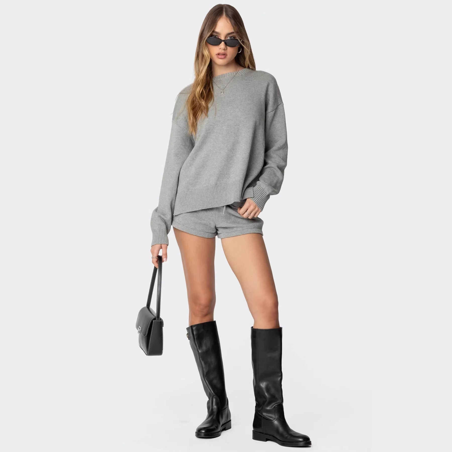 Anna is your effortless off-duty look sorted — a bold striped oversized knit and matching tie-waist micro shorts that's cosy, cool and completely that girl without even trying.
